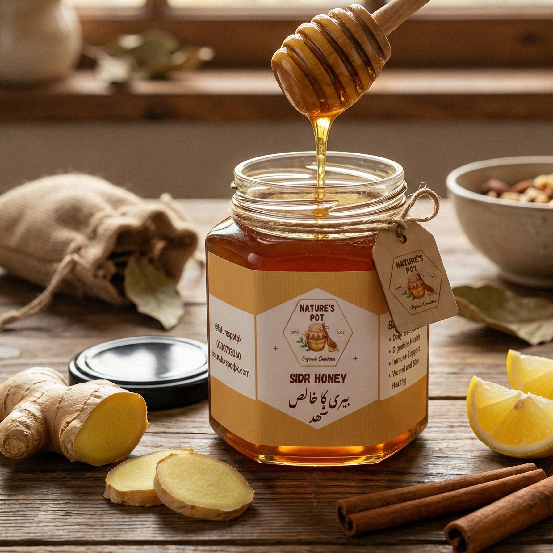 To get the medicinal benefits our elders talked about, you cannot use sugar-fed, farmed honey. You need the raw power of nature. At Nature’s Pot PK, our Sidr Honey is 100% Wild-Sourced from the deep forests of Gilgit-Baltistan. It is harvested from wild beehives found on ancient Sidr trees—never farmed, never processed, and never heat-treated.
